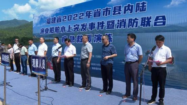 8月10日上午,福建省2022年省市县内陆渔业船舶水上突发事件暨消防联合应急救援演练在尤溪县闽湖举行。本次演练由福建省海洋与渔业局、三明市农业农村局、尤溪县人民政府主办,尤溪县农业农村局、坂面镇人民政府承办,尤溪县公安局、尤溪县应急局、尤溪县闽湖水库发展中心、尤溪县总医院、尤溪县消防救援大队、福建福旅闽湖旅游有限公司等单位协办。