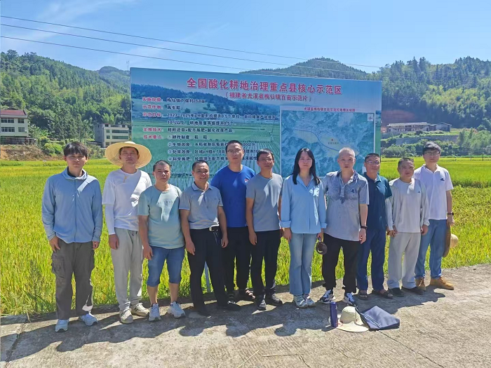 8月11日,尤溪县组织罗凤来推广研究员、陈春乐教授、黄艳高级农艺师等5名专家组成验收专家组,对尤溪县酸化耕地治理的梅仙镇百亩示范片进行田间现场测产验收。该示范片位于梅仙镇下保村,种植作物为水稻,示范面积178亩,酸化治理技术模式为:秸秆还田+配方施肥+酸化改良产品(特贝钙土壤调理剂)100公斤/亩。