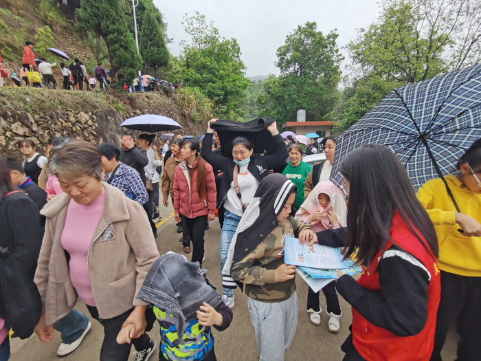 活动中,禁毒志愿者来到伏虎岩通过发放宣传资料、结合民俗讲解禁毒知识和相关案例等宣传方式,向来往群众介绍新型毒品的种类、危害以及防毒技巧,让群众认识到吸食毒品会带来危害和预防毒品的方法,增强群众抵御毒品的能力,拒绝毒品、远离毒品。