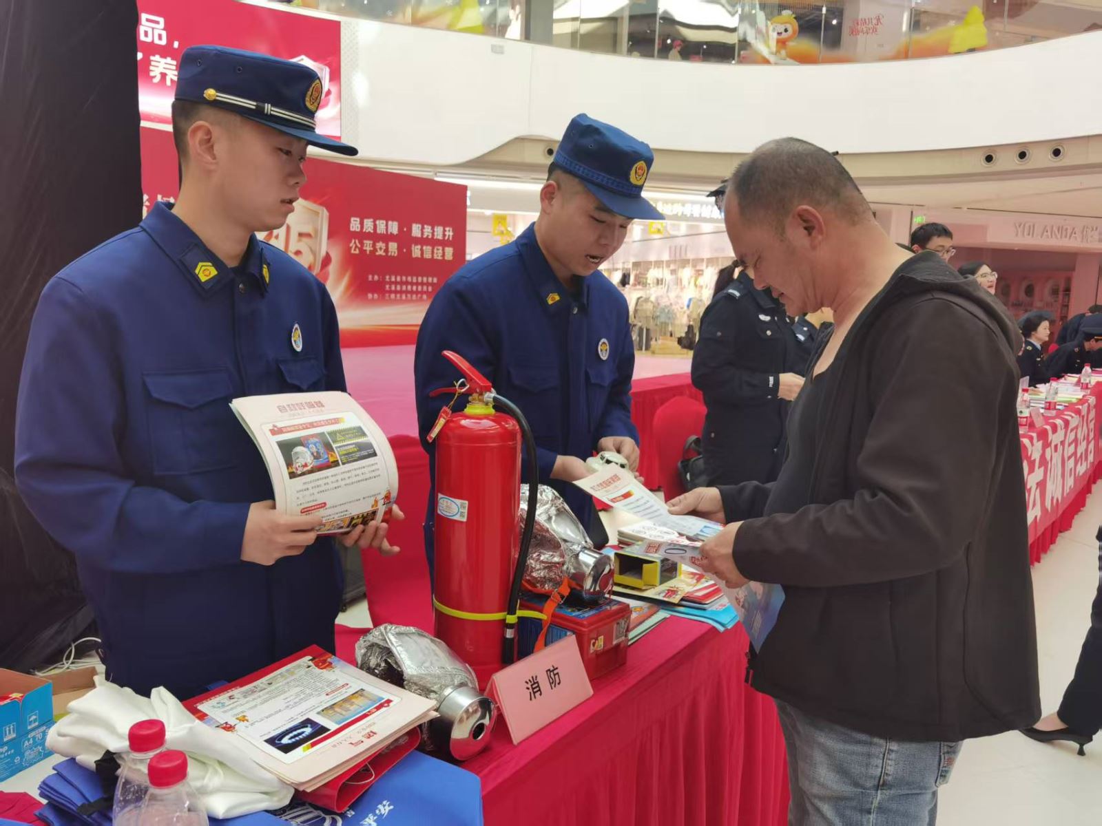 为严厉打击假冒伪劣消防产品,净化消防产品市场,提高人们识假辨假的能力和意识,3月15日,大队联合县市管、司法、公安、法院、检察院等部门在尤溪万达广场开展“3·15”国际消费者权益日宣传活动。
