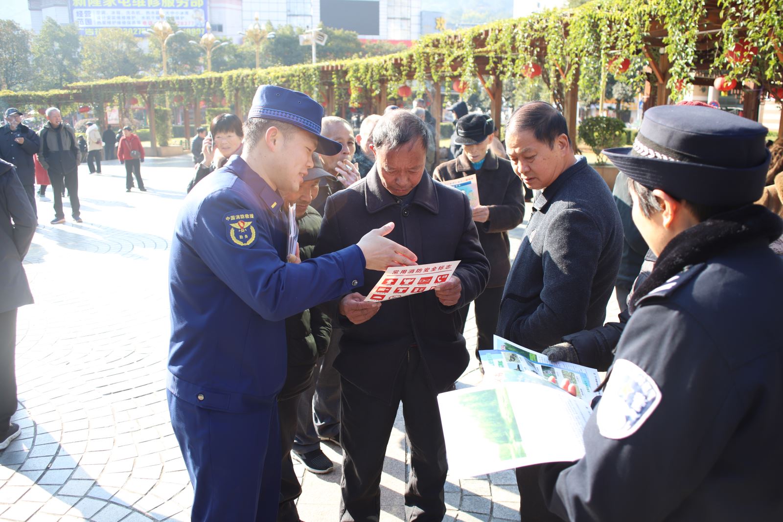 活动中,大队设置消防宣传咨询台,消防安全知识展板,宣讲员向过往群众发放消防安全知识手册、如何预防电动车火灾、经营性“三合一”场所警示等宣传资料,并就火灾的危险性、家庭火灾如何预防、着火后如何报火警、应急处置、自救互救以及日常生活中用电、用气、用火注意事项等内容进行了详细讲解。“家里电器、煤气瓶等着火了该怎么办?”“发生火灾为何不能乘坐电梯?”不少群众看到消防人员在宣传,还积极走上前来进行咨询,宣讲员针对这些问题一一进行了回答。随后,宣讲员围绕冬季火灾防控工作,结合近期典型火灾案例,走进周边商铺,向商户及居民发放宣传资料,并提醒广大群众要做好“三清三关”、严禁私拉乱接电线、堵塞消防通道等危险行为。