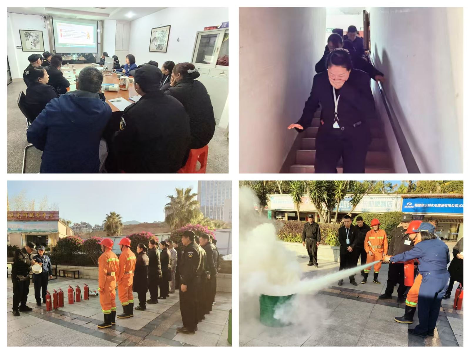 期间,宣讲员结合近年来发生的典型火灾事故案例,深刻剖析了高层建筑火灾的特点和危害性,通过案例警示参训人员,在生活中切不可麻痹大意,警醒参训物业切不可疏于消防安全管理,重点从高层小区火灾危险性及火灾的预防措施、高层火灾初期阶段的扑救方法、火场逃生自救常识进行了普及,并紧紧围绕物业的工作职责,从日常防火检查、灭火应急疏散预案制定、消防安全责任落实、消防设施器材维护保养等内容进行了详细说明。同时,宣讲员组织参训人员开展“灭真火”实操演练,通过现场演示、手把手教学的方式,教授常见灭火器、水枪水带的正确使用方法及注意事项,让参训人员学习、体验通过灭火器扑救初期火灾的技巧。随后,演练模拟高层建筑楼栋突发火灾,物业发现火情后迅速启动应急预案,组织参训人员进行逃生演练。