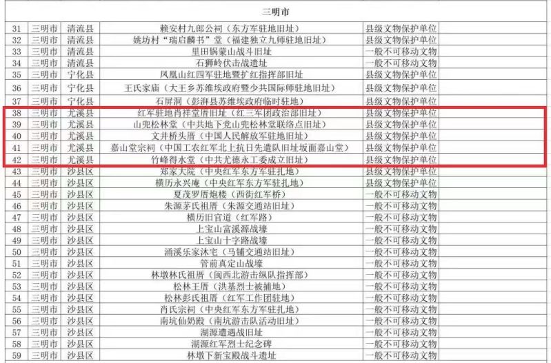 尤溪县5处不可移动革命文物入选福建省第二批革命文物名录
