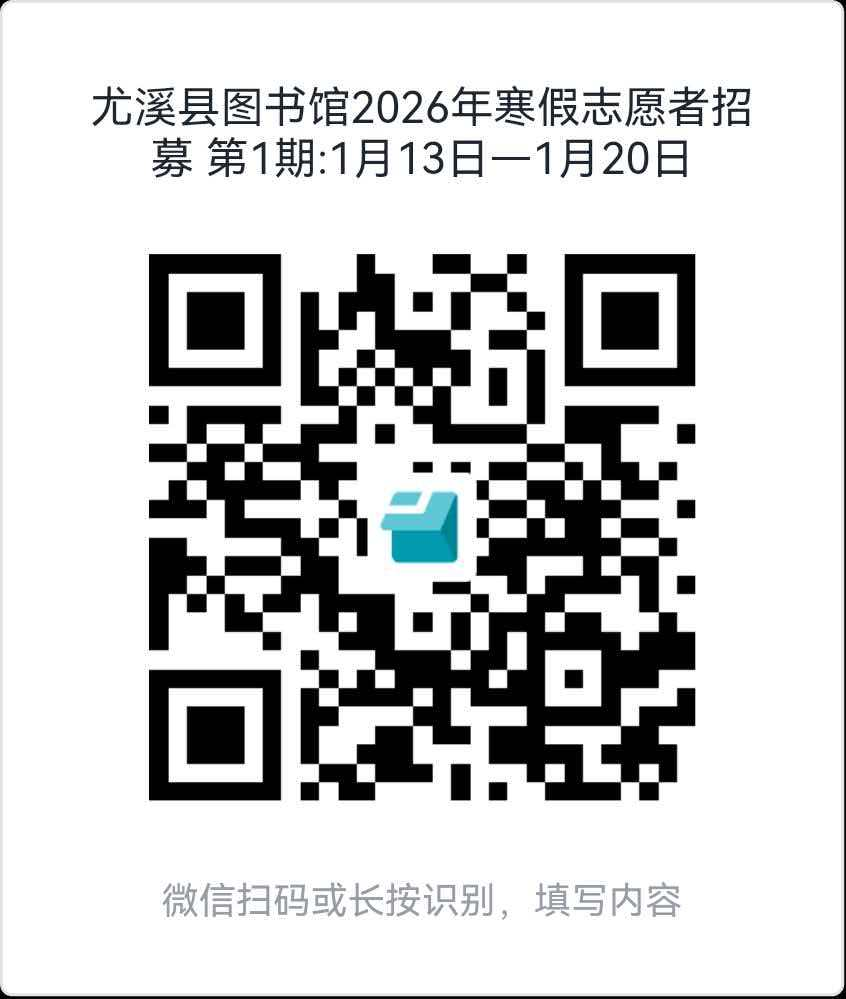 从课本到实践,从热爱到行动,这个寒假,让我们以志愿之名,赴书香之约,在尤溪县图书馆书写属于青春的温暖故事~ 期待每一位有爱的你,加入我们的文化志愿服务团队!
