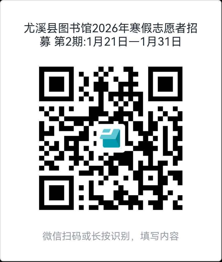 当寒假遇上墨香,当青春邂逅奉献——尤溪县图书馆2026年寒假志愿者招募正式开启!这个假期,拒绝躺平虚度,来充满书卷气的文化空间,用坚守传递温暖,用实际行动书写青春担当,我们等你来赴这场与文字的约定~