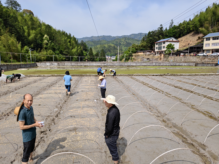工作人员按试验分区与播种量,将83个参试品种在划定小区内精准均匀撒播,现场悬挂品种标签、搭建竹拱、覆盖薄膜,采用湿润育秧技术培育壮苗,确保秧苗齐、匀、壮。同时,试验田空余地块引进十余个优质稻品种进行示范展示,进一步丰富试验内容、助力良种推广。技术人员还对后期秧田管理作出细致安排与严格要求,确保试验全程规范可控。