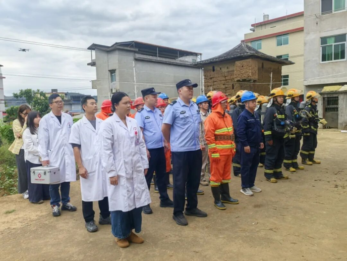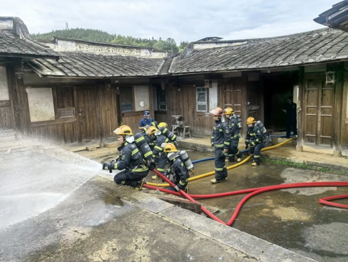 为进一步强化文物保护单位应急处置能力,构建“多部门联动、全链条响应”的安全防线,县消防救援局联合镇消防所、专职消防队、供电所、派出所及卫生院,在坪寨村大福圳古民居开展实战化应急演练,全面检验各单位协同作战水平。