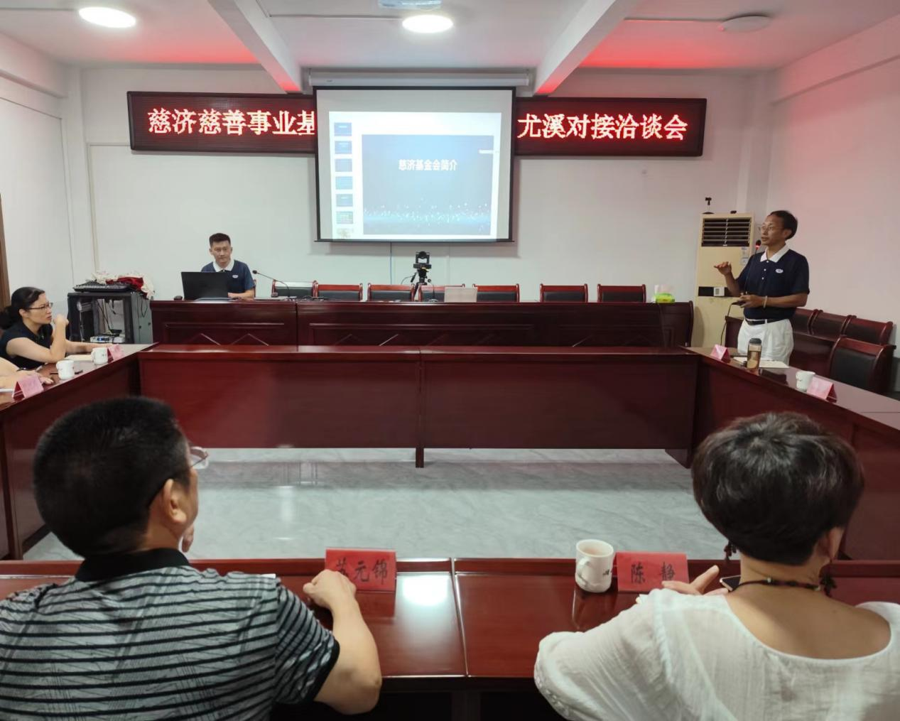 7月18日上午,慈济慈善事业基金会厦门志愿者涂小金等一行来尤开展“新衣送爱”活动对接工作并召开对接洽谈会。县政府党组成员、二级调研员、县慈善总会会长纪优梓,县民政局党组书记肖仕联、局长卢慧颖等参加洽谈。